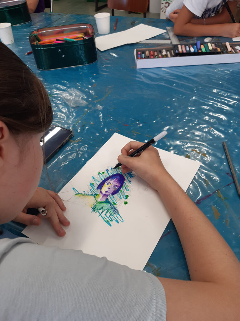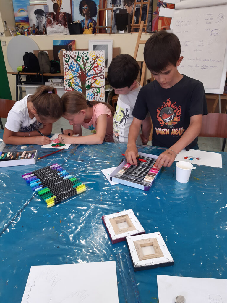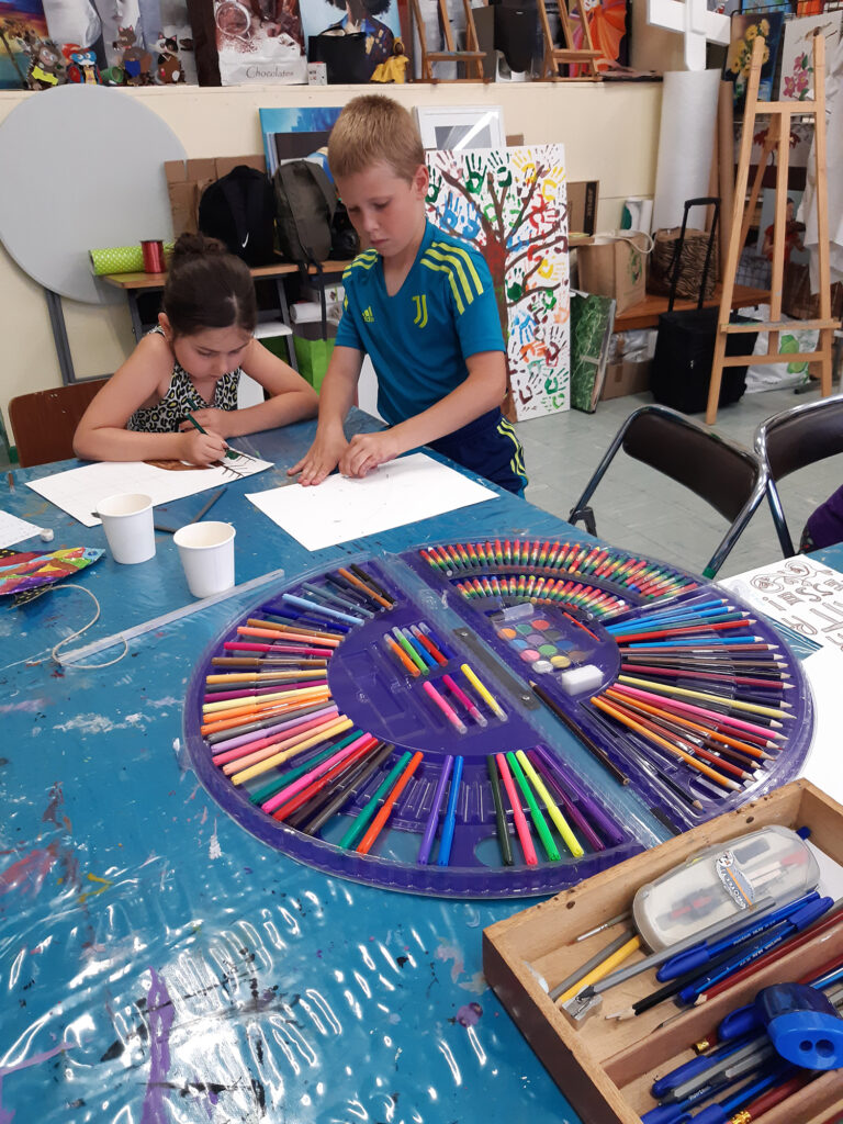 Lors des ateliers pour enfants, Isabelle RODRIGUEZ, artiste plasticienne, propose aux petits adhérents de partager avec eux son savoir et ses techniques.