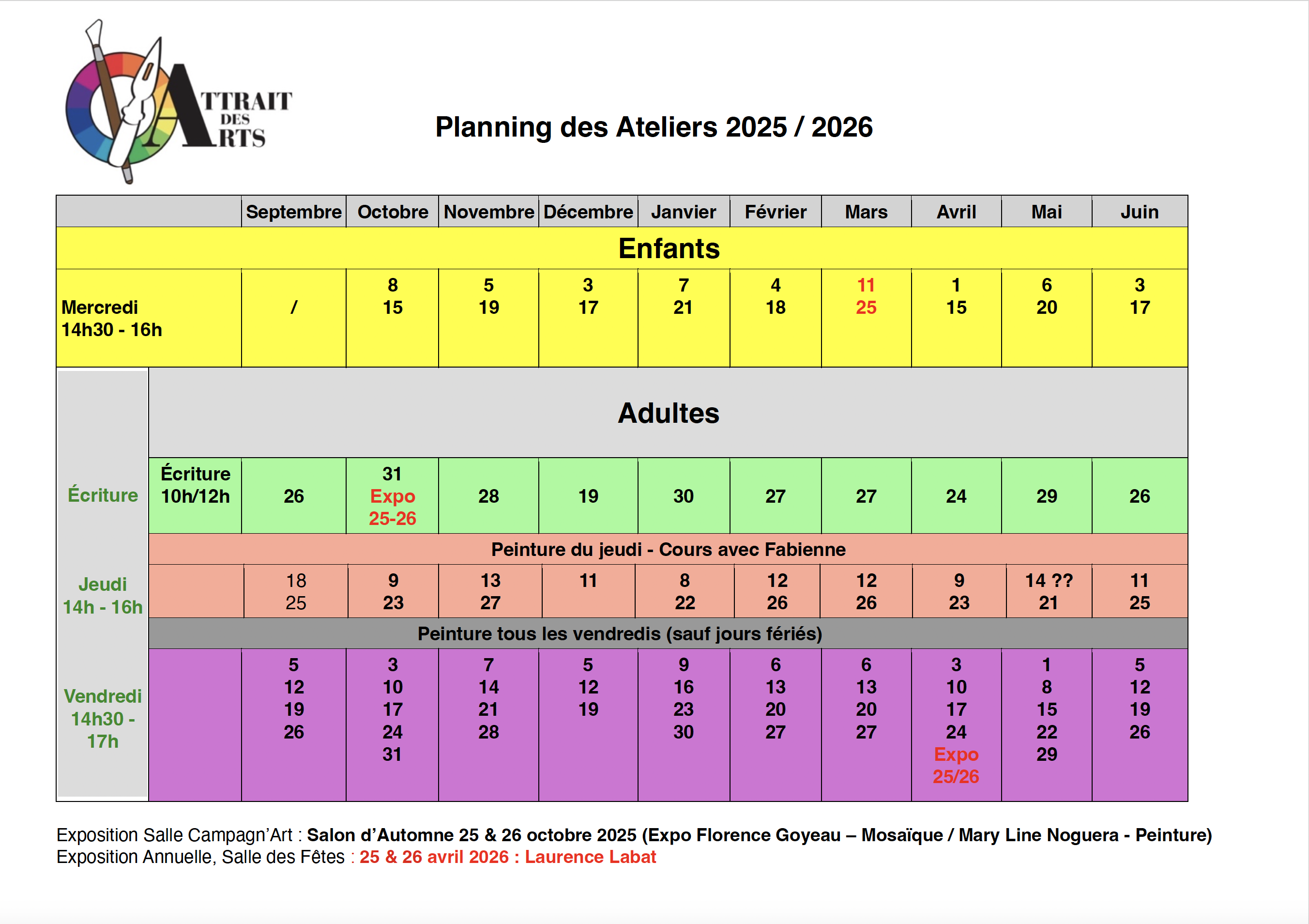 La cotisation annuelle donne accès à tous les ateliers proposés.